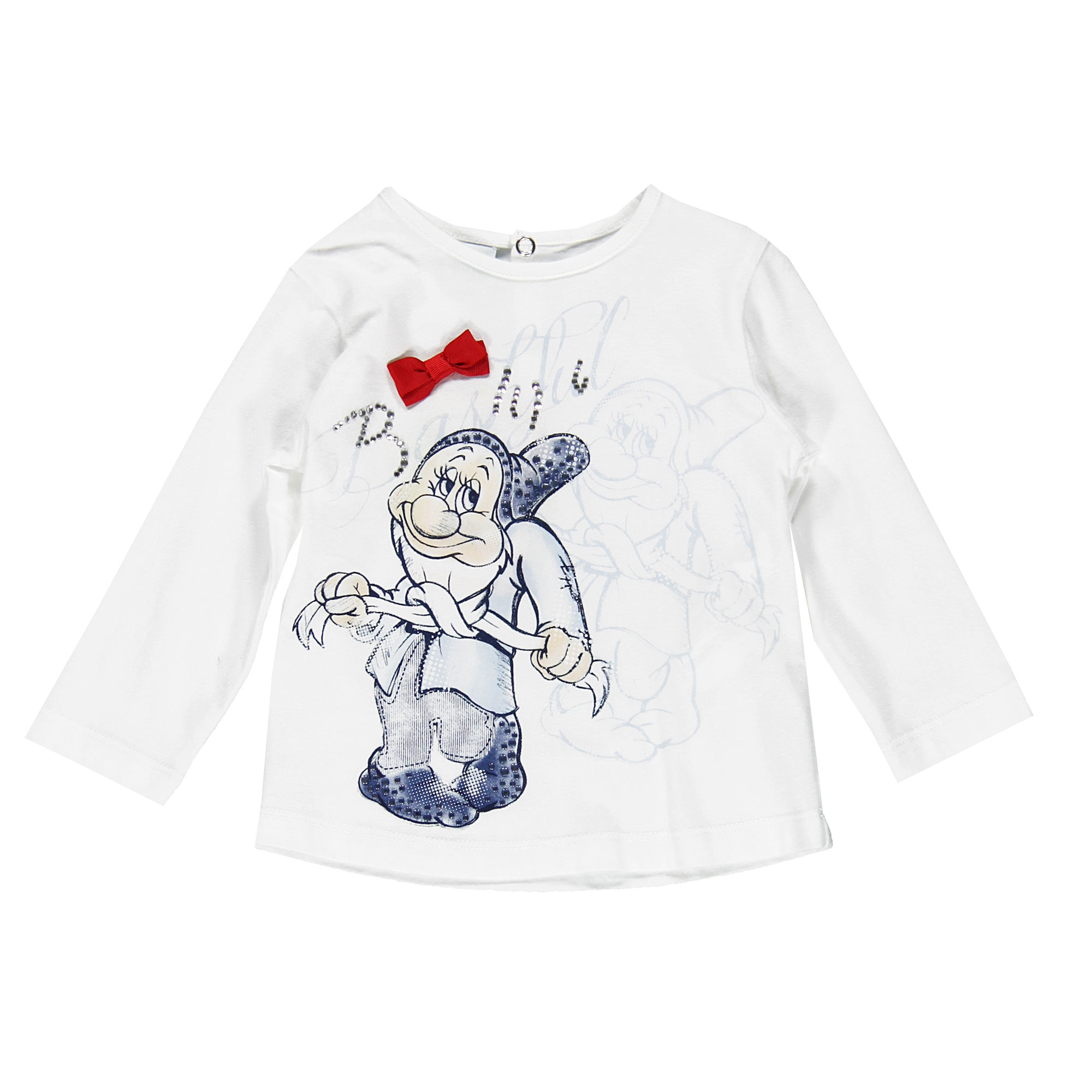 - спереди - великолепный большой печатный принт с гномикоми; со стразиками; украшен бантиком