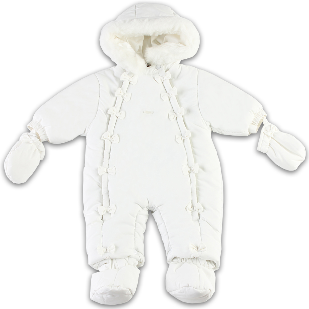 Очень красивый, нежный, легкий и теплый комбинезон. Ваша малышка в нем будет просто очаровательна! Очень удобен для мамочек - застежка (две сквозные молнии) позволяет легко одевать/раздевать ребенка.