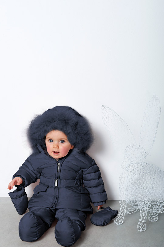Down jacket with detachable hood and detachable fur border. Made of nylon taffeta fabric, with gloss effect, water repellent. Lining made of soft brushed micro fleece fabric. Frontal fastening with zipper and belt.